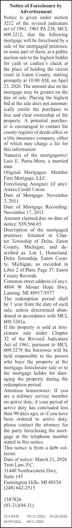1. 325 E. VERMONTVILLE HWY., POTTERVILLE, MI MI